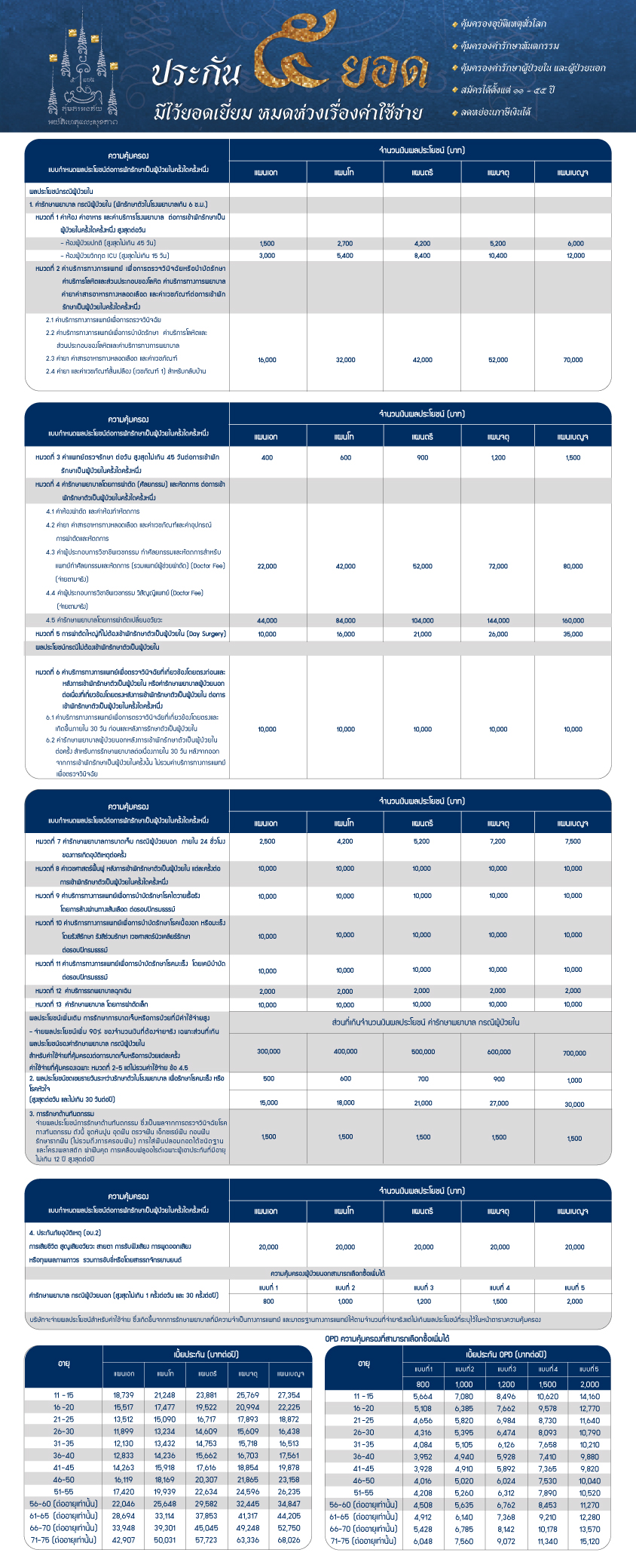 2. ชื่อแผนประกัน ๕ ยอด เป็นชื่อแผนทางการตลาดของกรมธรรม์ประกันภัยสุขภาพและอุบัติเหตุนวกิจส่วนบุคคล