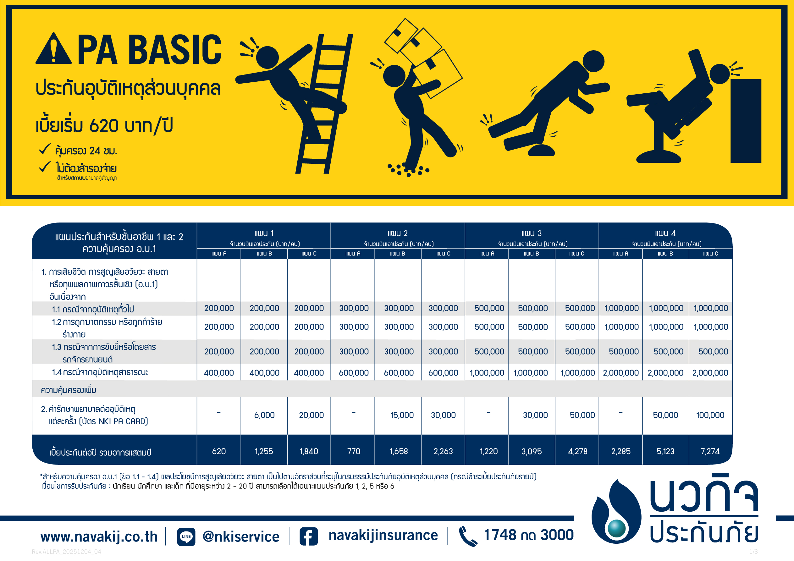 สำหรับผู้ซื้อความคุ้มครองเพิ่มสำหรับค่ารักษาพยาบาล จะได้รับบัตร NKI PA CARD เมื่อได้รับอุบัติเหตุ